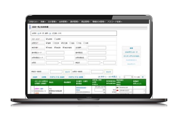 出荷業務を行います。 ピッキングリストや各種出荷に必要な帳票の出力を行います。 オプションにより、検収結果の確認が可能です。